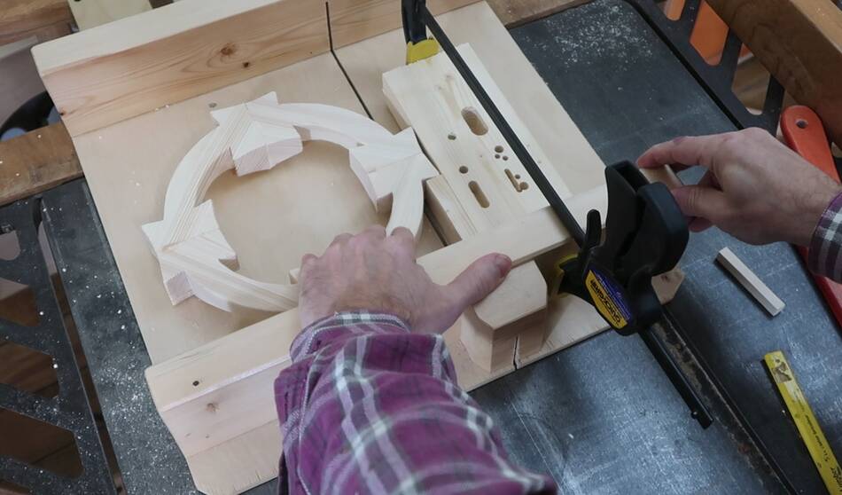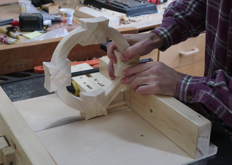 Then I cut from below, both using a table saw sled, to cut a rabbet off the