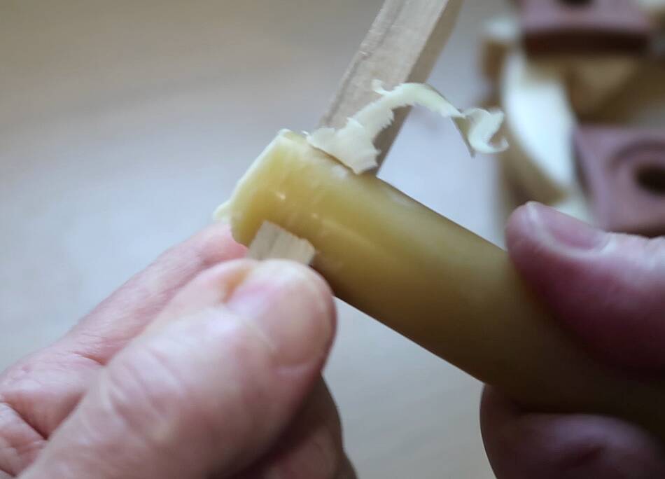 I drilled a hole on the edge of a piece of wood to make a sort of candle-resizer,