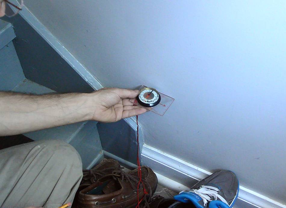 Magnet and compass alignmentI used a stack of rare earth magnets to transfer the location of the opening from the back to the front. I fix the magnets to a corner of the future opening with a clamp (a clamp with plastic jaws, I should add).