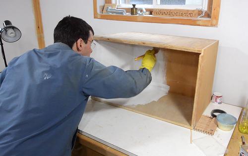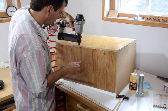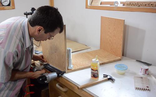 Making the boot nook boxNailing together a plywood box that will form the boot nook.