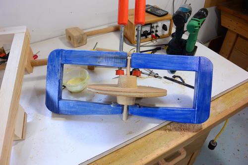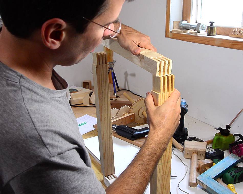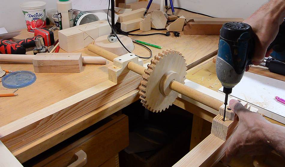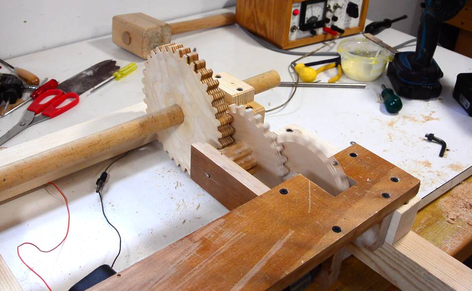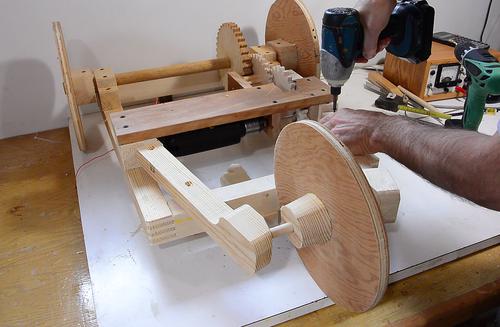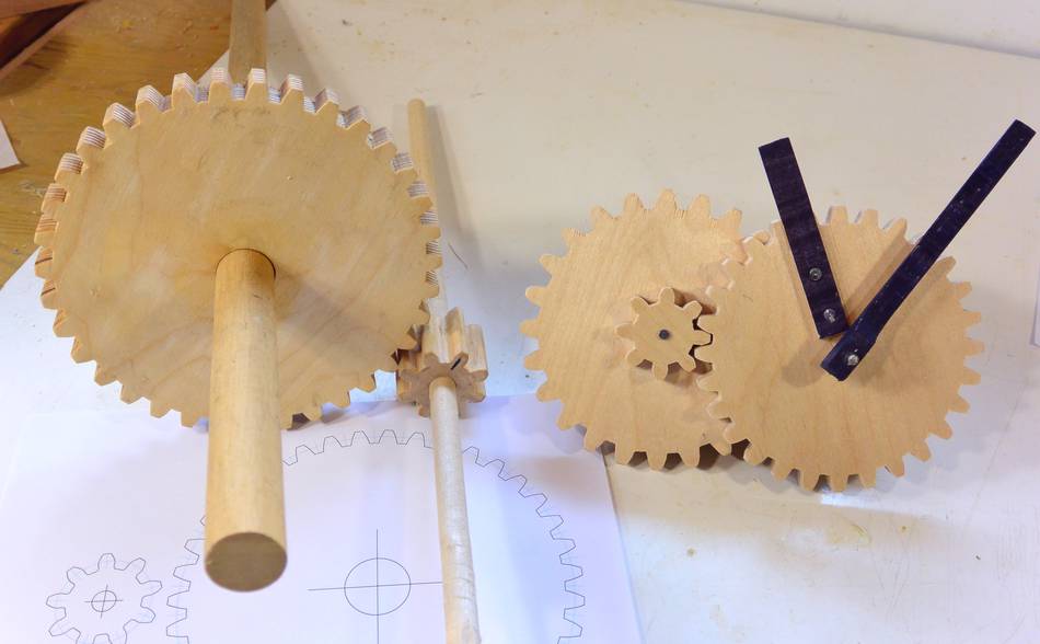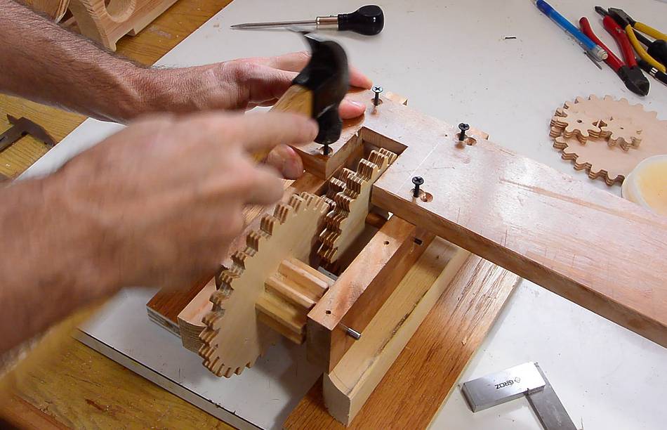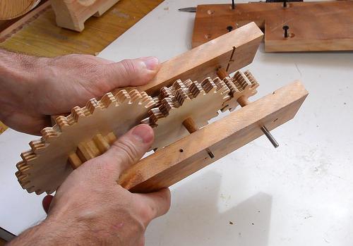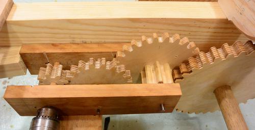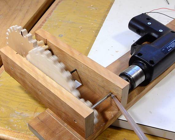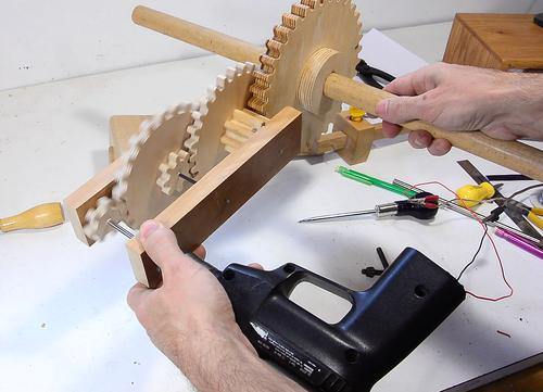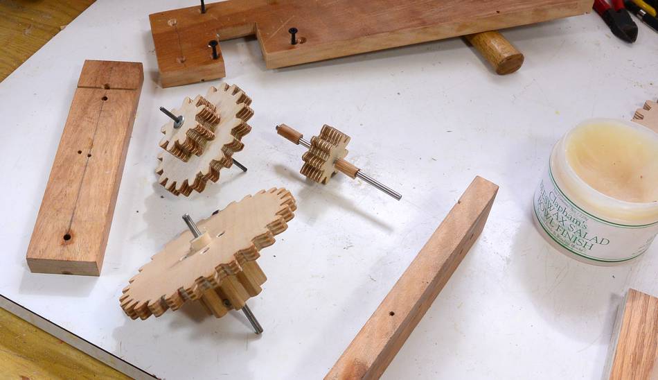 The gear train squeaked a little, so I oiled where the shafts turn in the wood until the squeak stopped.