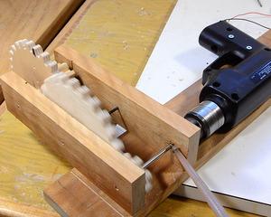 I had to run the drill fairly fast to get about the speed I wanted. That made the machine too loud. Time to change the gear ratio.