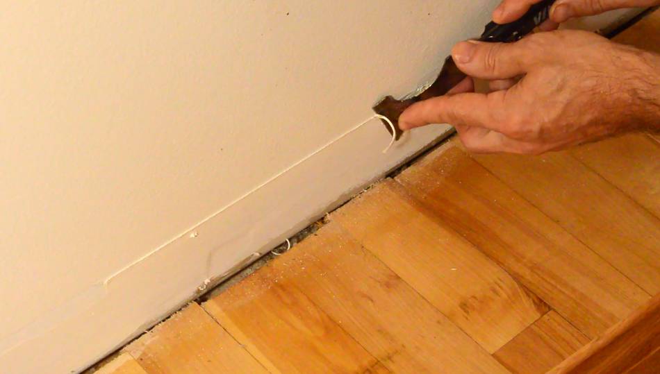 Before I got started, I had to scrape off the line in the paint from the old baseboards.