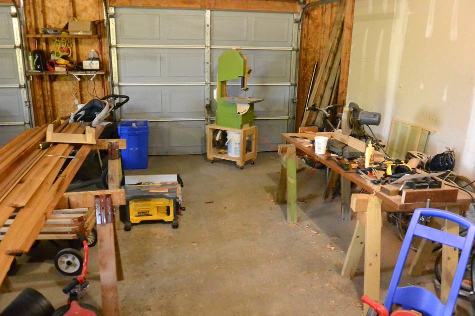 With all the machines I hauled to the garage from my shop - miter saw, bandsaw,