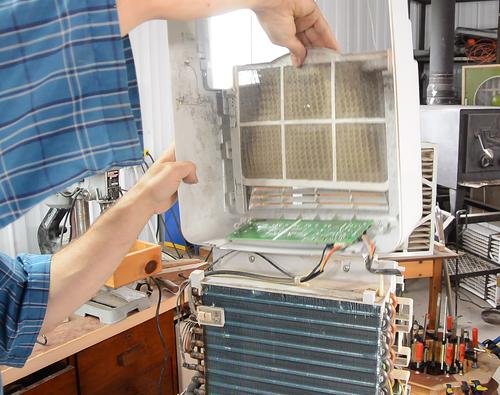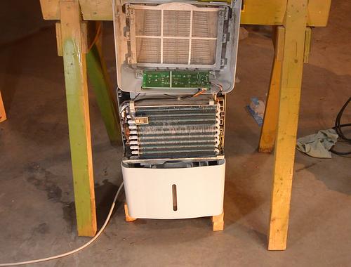 I figured maybe this one had iced over from time to time and when the ice melted it it dripped outside the drip tray, and maybe cleaning the filter would fix that. But when I put it back in the basement, I once again found a puddle around it in the morning.