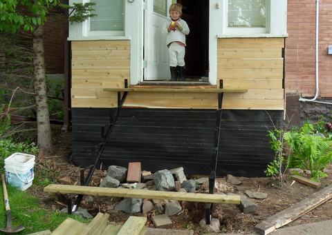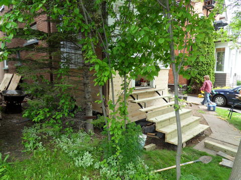 so that the stairs would reach up to the cement walkway like the old ones did.
