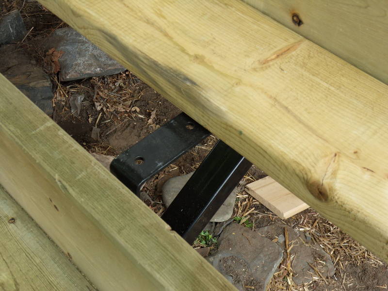 Starting the stairs. I used pre-made metal stringers. Pressure-treated lumber