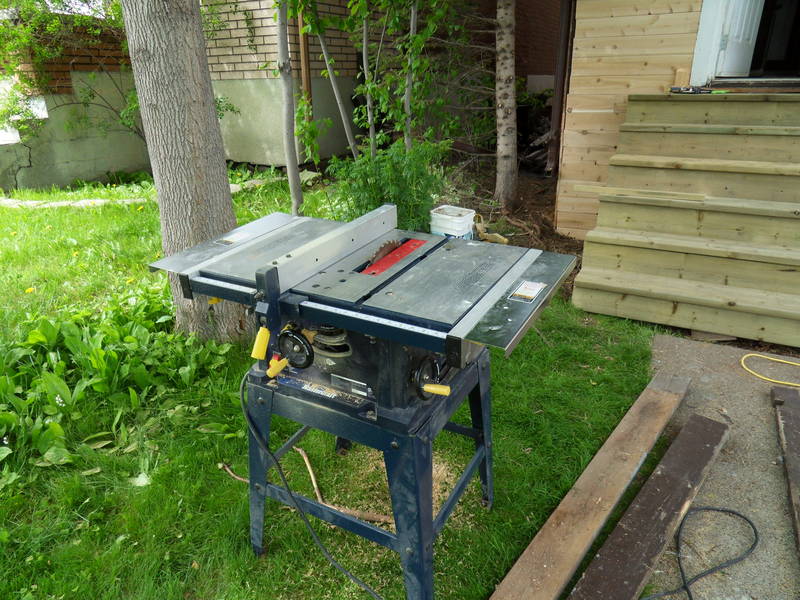 We borrowed a table saw and a miter saw from a neighbour. This is one of those cheap sub-$200