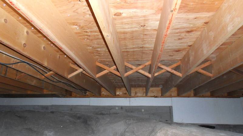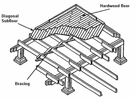 floor joists of most 1950s or earlier houses, you will see the subfloor boards at a 45-degree angle.
