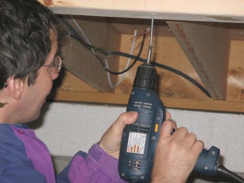 be parallel to the floor boards, so it had to be put in at an angle. If you look up between the