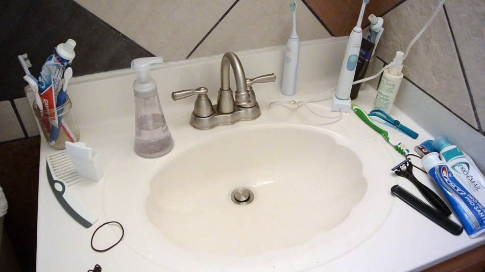 dirt around the sink much of a problem when I was single :)