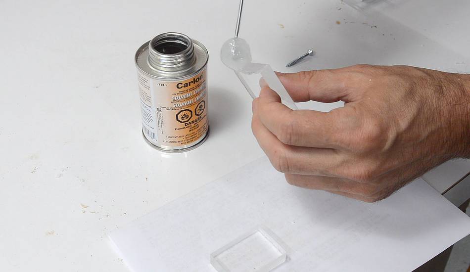 I read that PVC solvent cement could be used to glue the acrylic together,