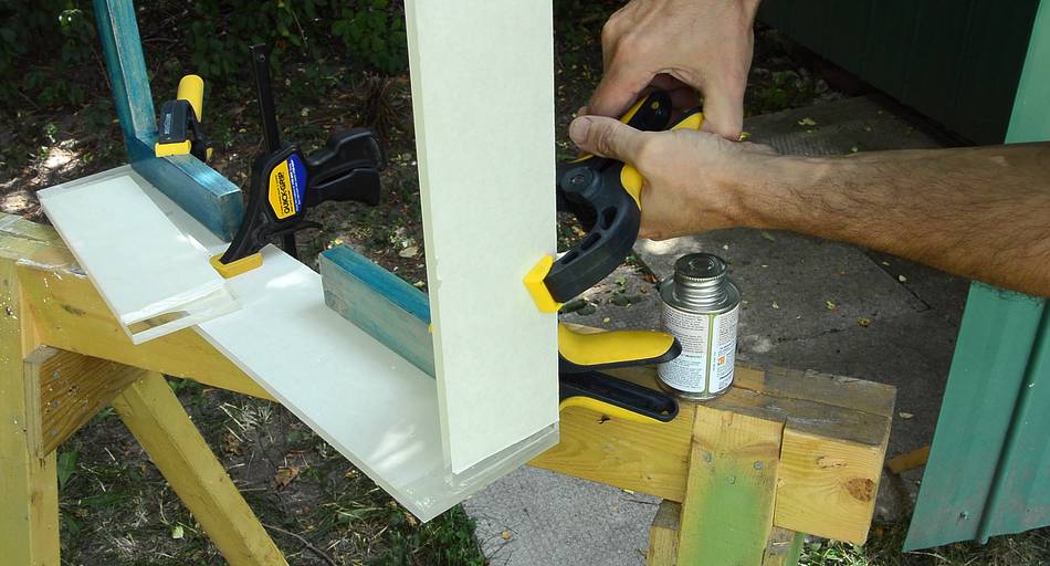 I took everything outside for gluing to avoid getting solvent