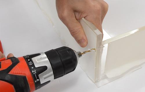 Then drilling the holes. I used a long drill bit because on the right side,