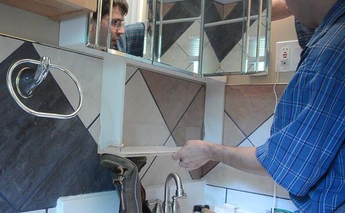These will mount to the bottom of a medicine cabinet just above.