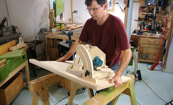 with the saw so light, and no cabinet, it's easy to flip over the top