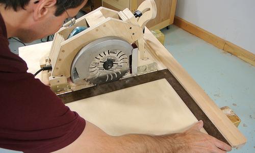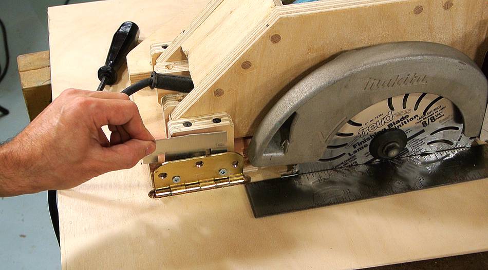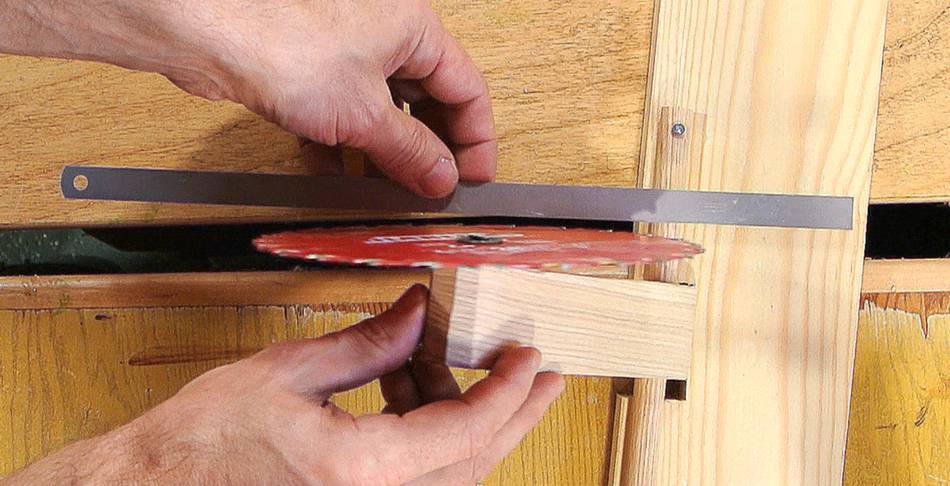 the front edge of the saw, and that axis in turn must be perpendicular to the