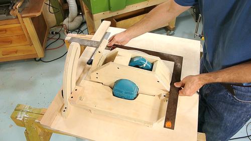 Here's using a square to eyeball that the pin used for depth adjustment is