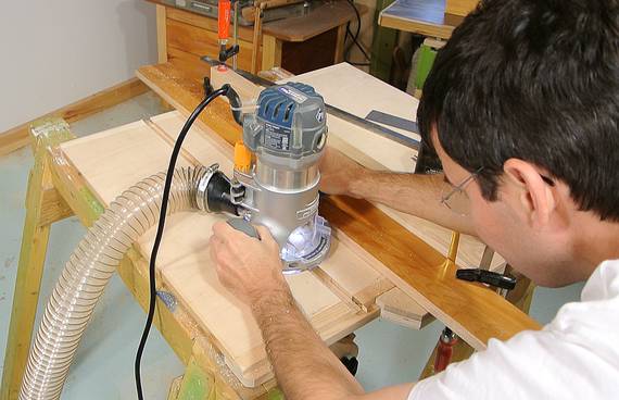 to pull the dust out of the router. Surprisingly, it has enough suction to keep up,