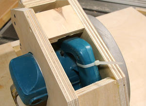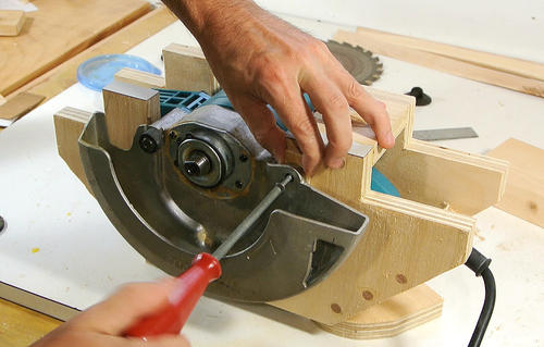J'ai creusé un peu la table pour mieux encastrer la scie et gagner ainsi un peu de hauteur de coupe.