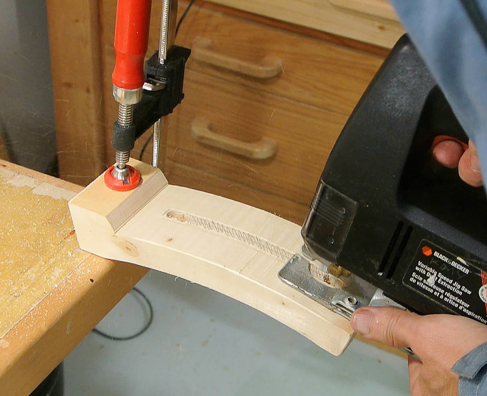 Il faut que la scie puisse sortir facilement sans avoir à défaire les serre-joints. Sinon, une fois tout collé, elle sera indémontable.