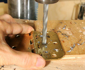 J'ai utilisé des charnières de portes que j'ai repercées. Les trous étaient trop loin de l'axe de rotation. J'ai aussi chanfreiné les trous pour noyer les vis.