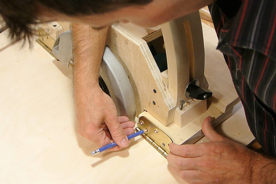 Etape suivante, comment installer des charnières pour pouvoir incliner la scie?
