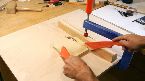 Pour vérifier le bon positionnement des pièces, j'utilise des serre-joints.