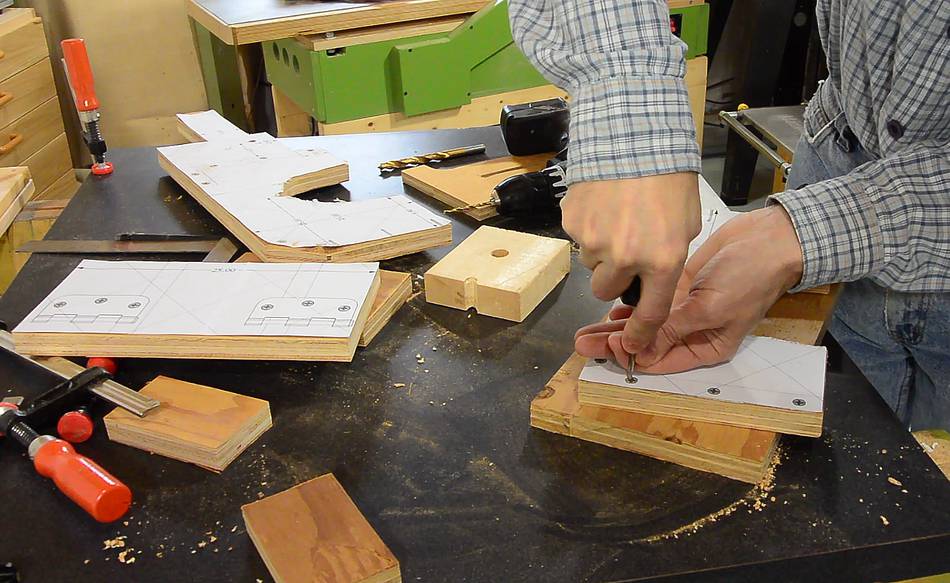 Then drilling holes for the screws. These holes are the size of the screw