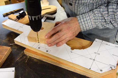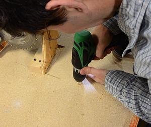 Drilling the pilot holes for the screws. I'm drilling these through the