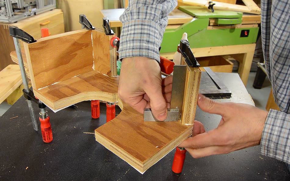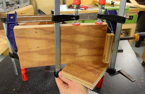 To force it into square-ness as the glue dried, I clamped another piece