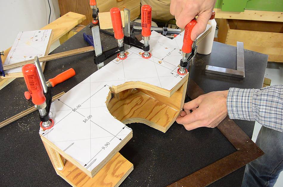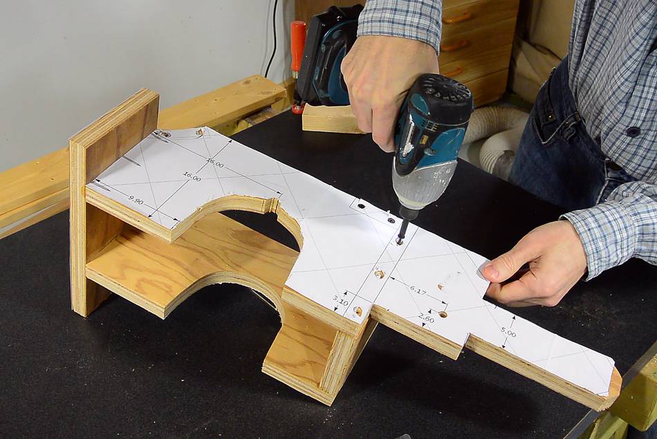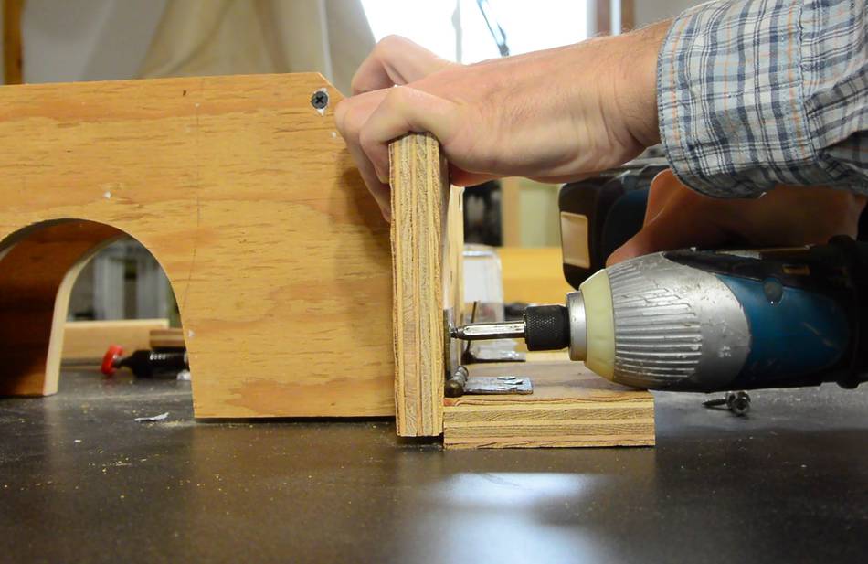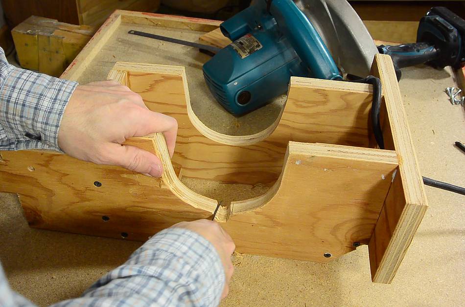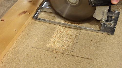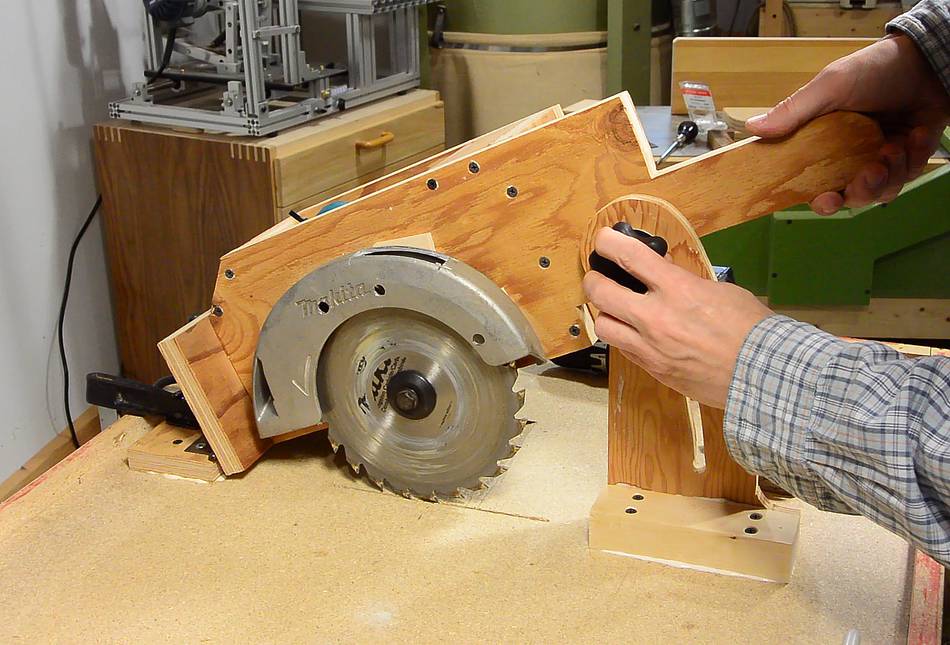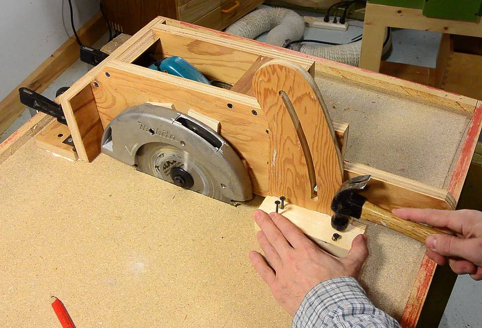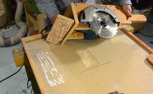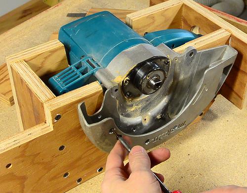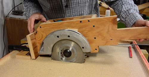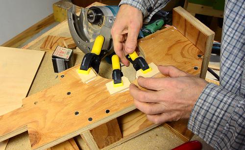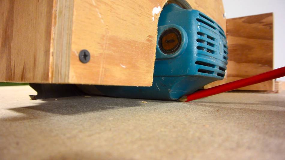 It can be difficult to figure out where the saw hits the mount. If in doubt, draw pencil lines all over the parts that go next to the plywood, and then see where the marks transfer to the wood.