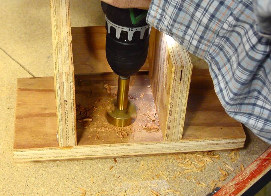 Ironically, I put the hole in slightly the wrong place, so I had to enlarge it with a jigsaw later.