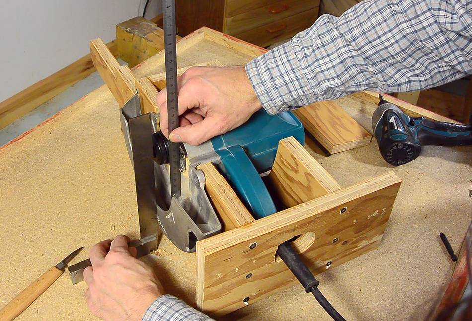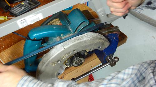 Tweaking the saw mount to make sure the saw goes in at the