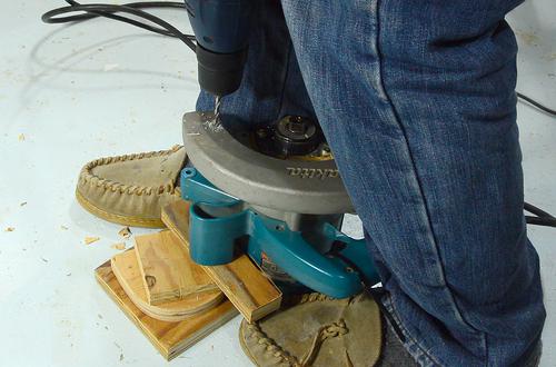 holes in the saw. That way, I can make sure the pilot holes are in line