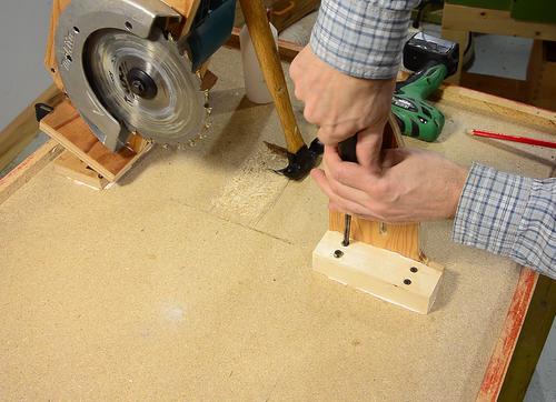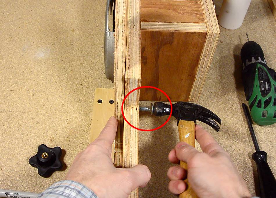 screws with a hammer. This makes a divot in the particle board for