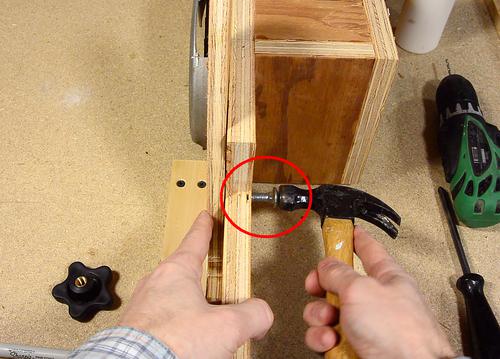 Tapping a 5/16" (M8) carriage bolt into the saw bracket....