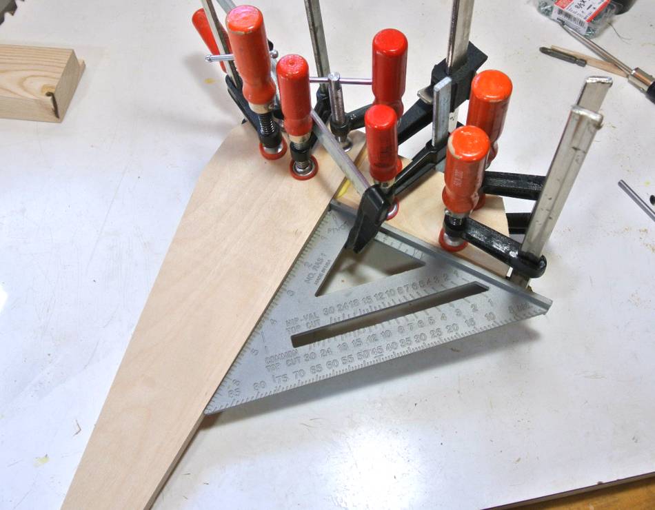 Clamping the T-square part together. Glue is a lubricant, and pieces