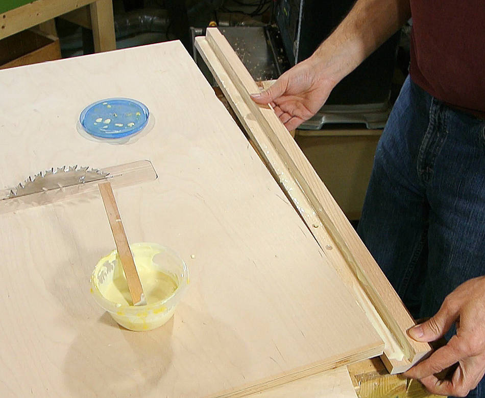 roughly an inverted T as its profile. Here I'm getting ready to glue this onto the table.