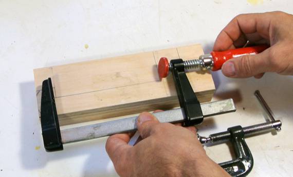 to the side as it's tightened, so I added two blocks to hold the clamp in