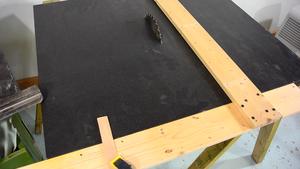 against the edge of the table. I then tightly clamp the fence