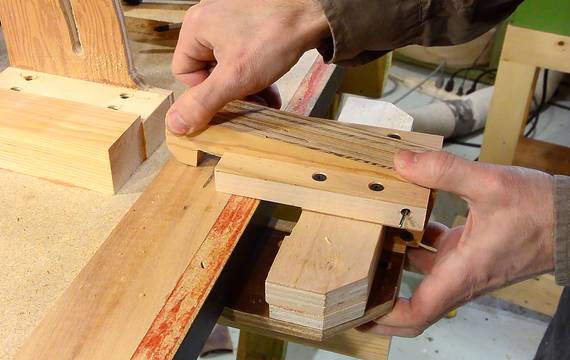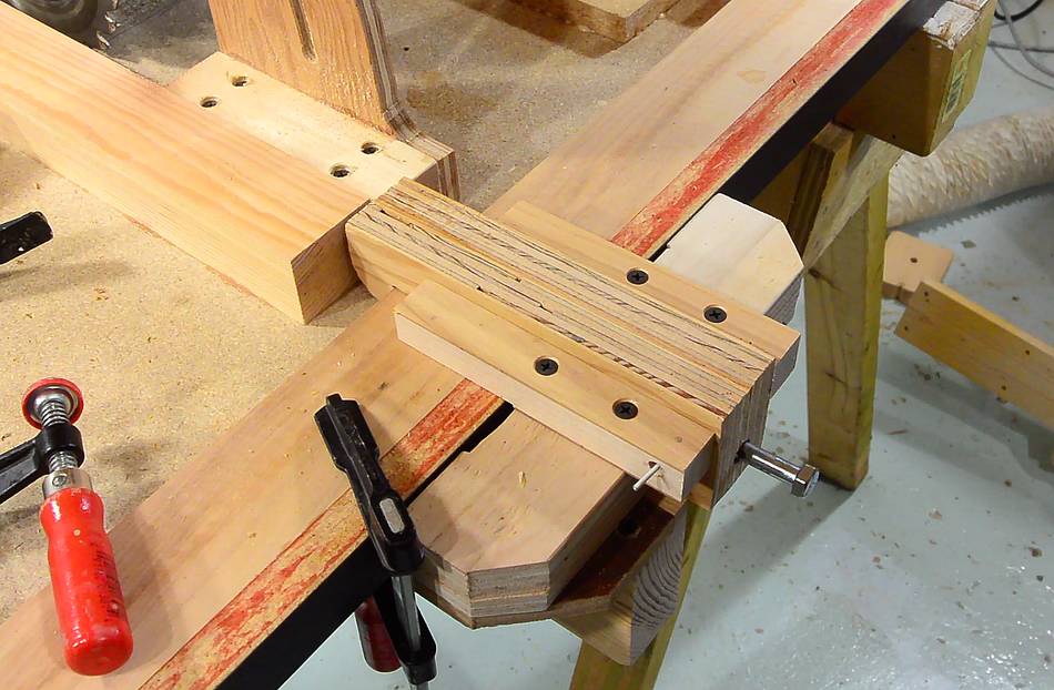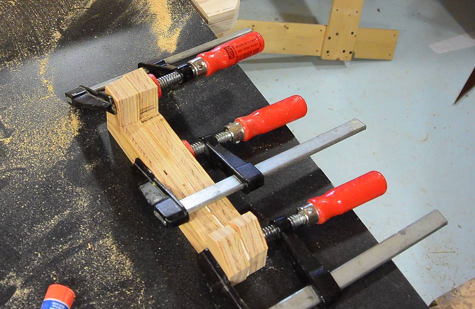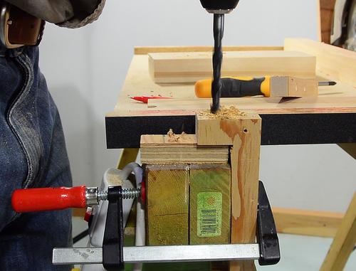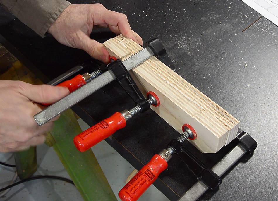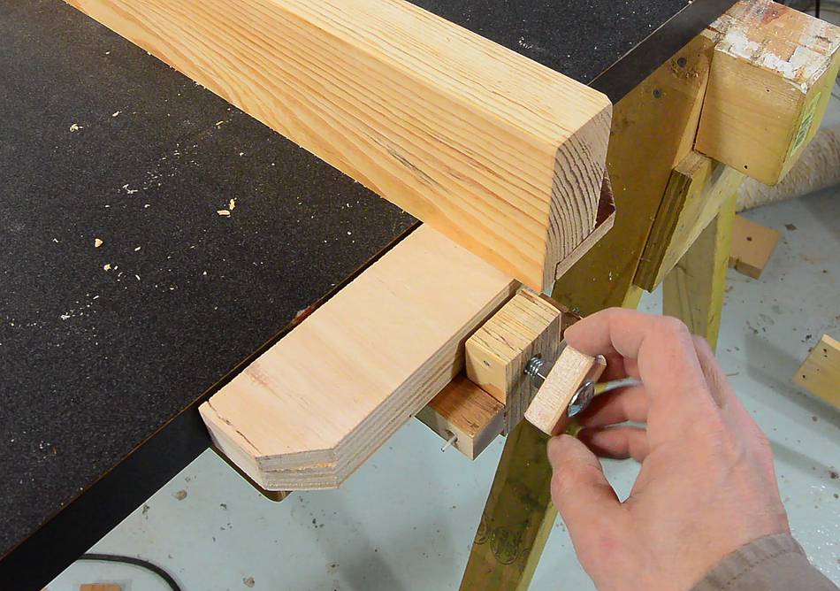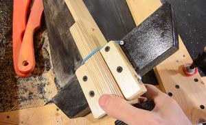 Clamp in place. The clamp fits between blocks of wood