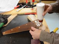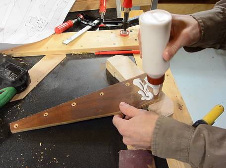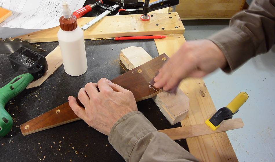 Gluing the triangular fence brace to the front bracket. Because I'm using
