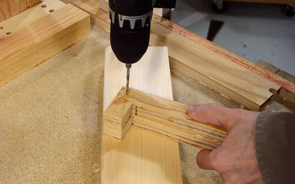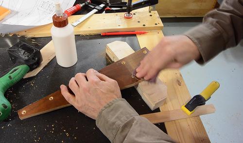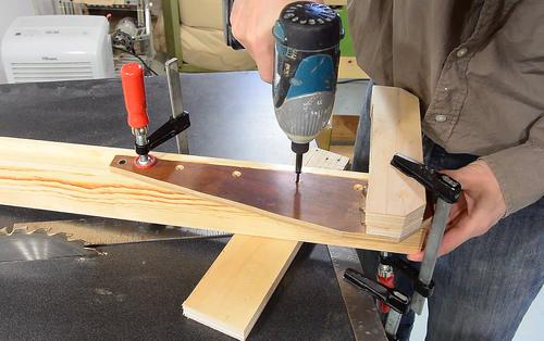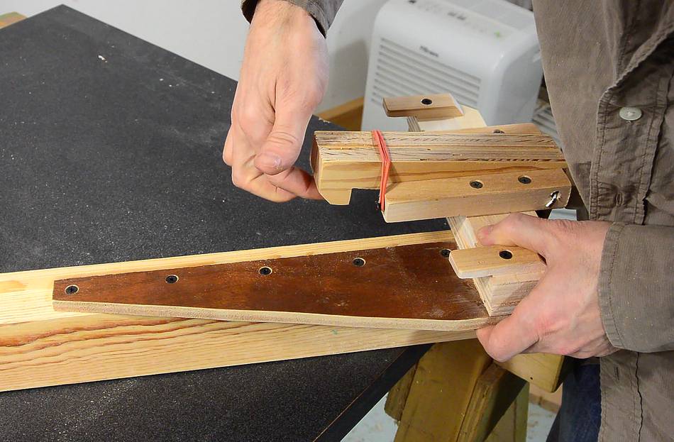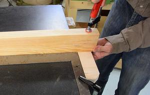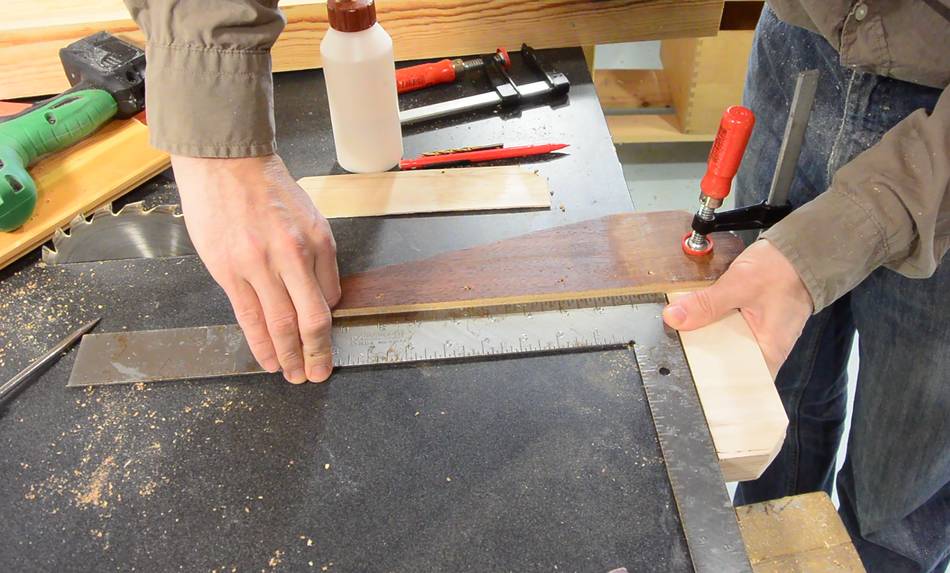 glue still wet, I hold it against the edge of the table and check it with a