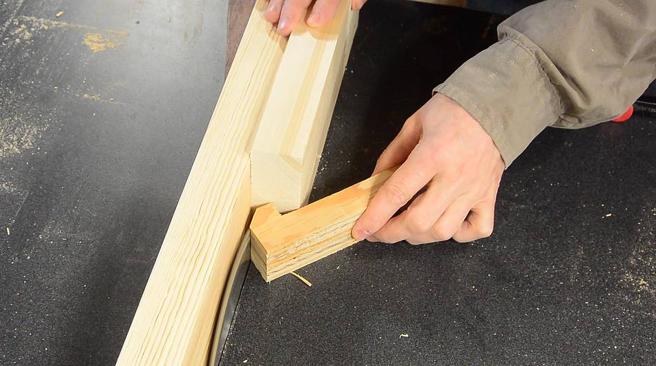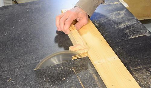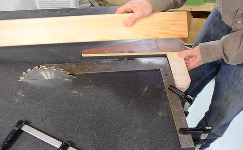 Cutting out the parts that will push against the rail on the front of the saw.