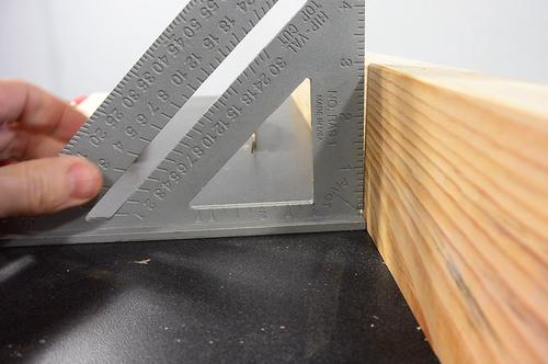 To get the final assembly square, I clamp a square to the edge of the table,