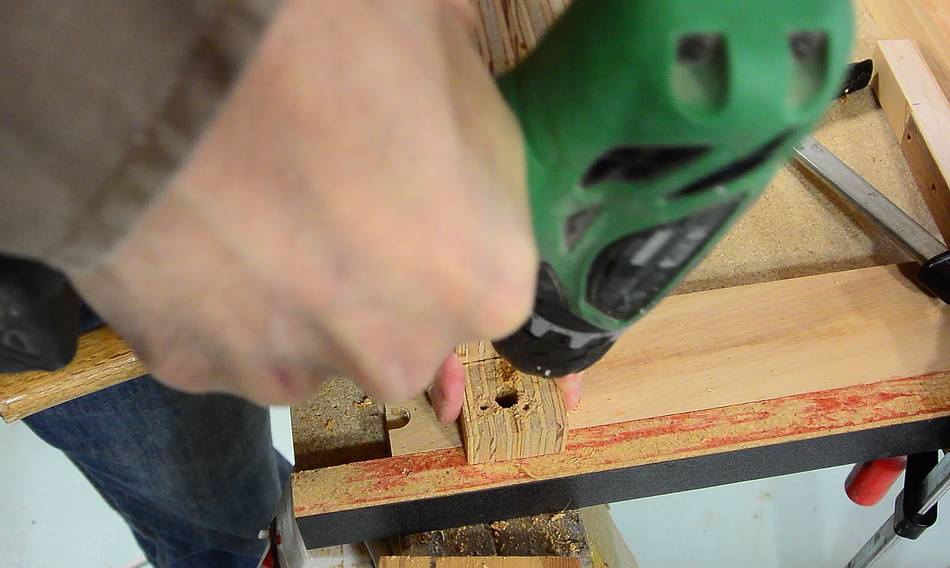 drilled a hole in a strip of hardwood just smaller than the square part