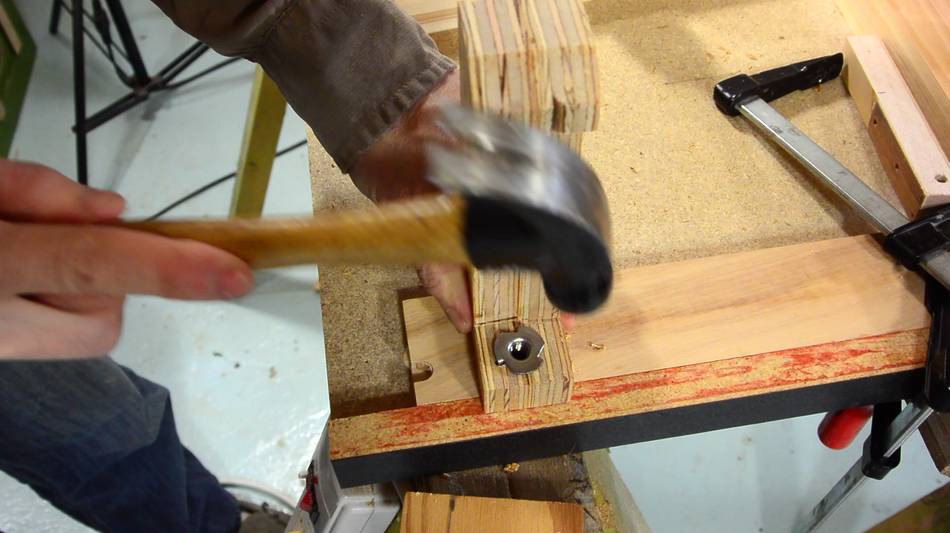 Driving the T-nut in. It turns out, I still cracked the bracket, so I put
