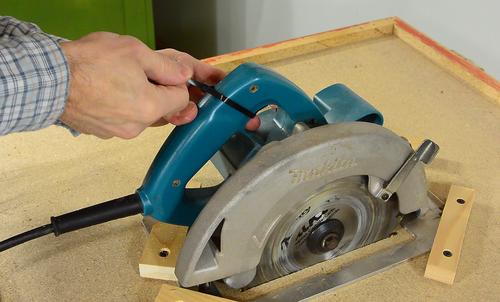 I used a zip-tie to lock the trigger down. At first I turned the saw