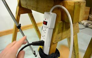 I clamped the power bar to the leg of one of my